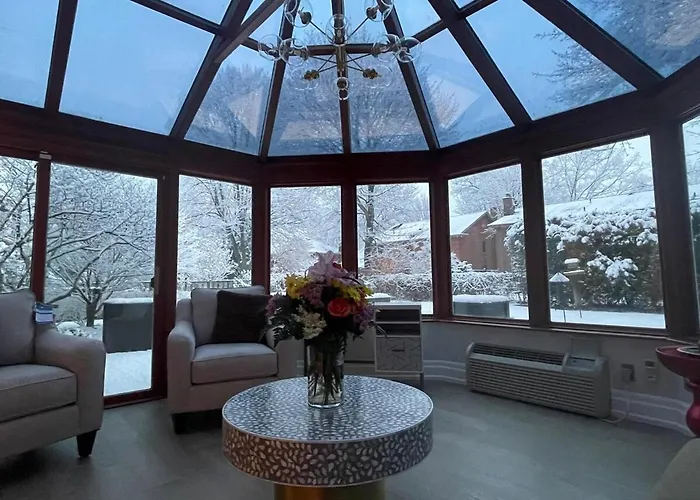 De 4-slaapkamer 6 Bedroom Luxury House With A Bright Sunroom Mississauga villa ligt op 4 km van Erin Mills Twin Rinks en nodigt gasten uit om toeristische bestemmingen te verkennen.